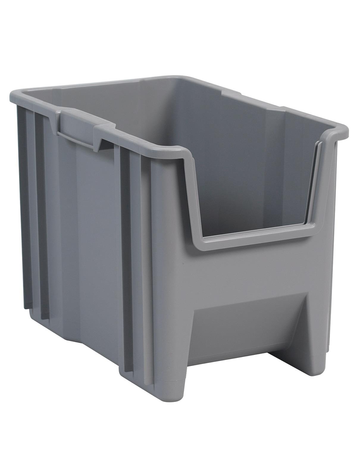 • Bins stack to form tall, stable storage arrangements on floors or standard shelving.