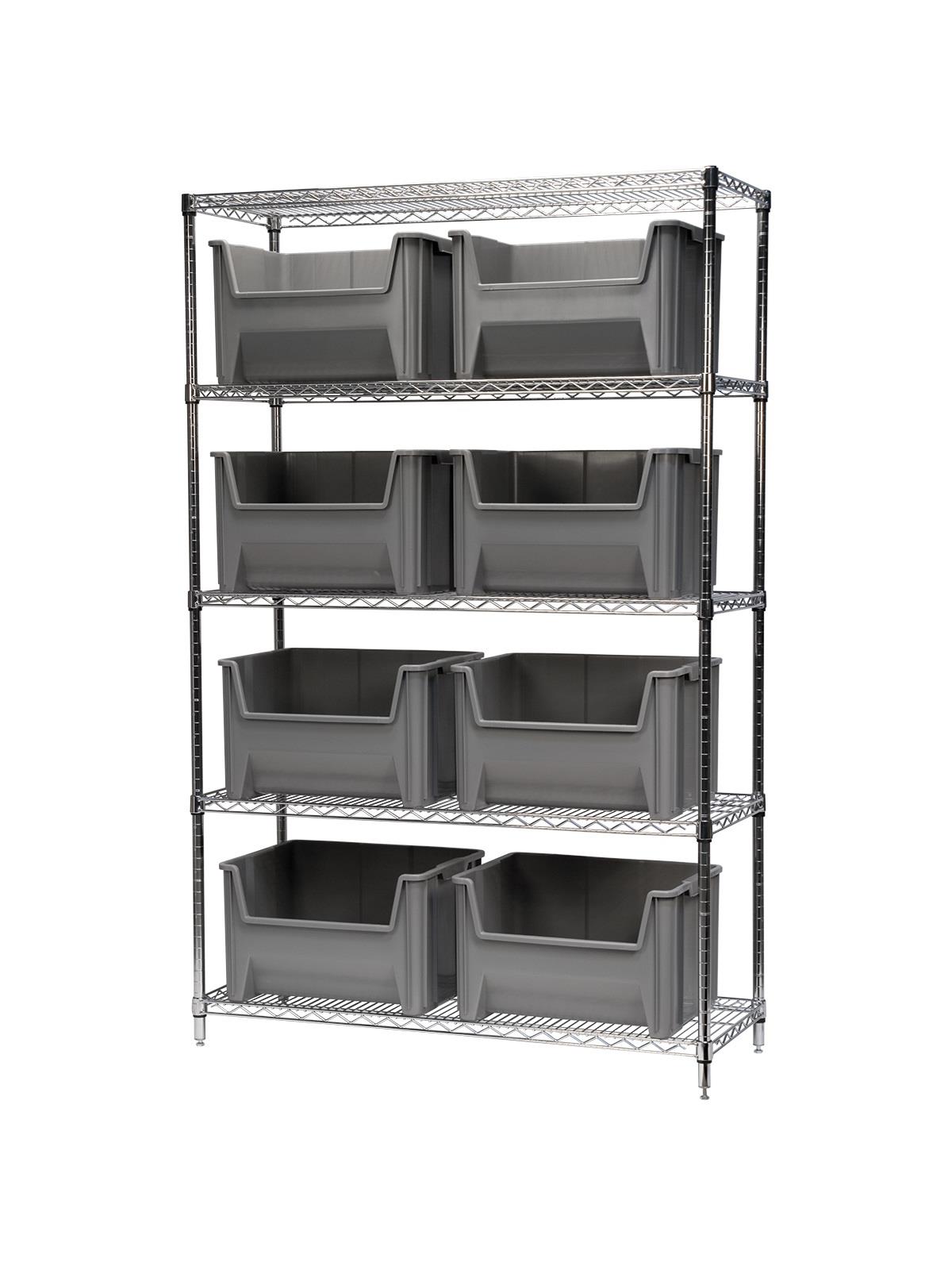 Available with shelves and come with 8, 9 or 12 bins. Bins feature a wide hopper front for easy access. Bins available in Blue, Red, or Gray. FOB Shipping Point.