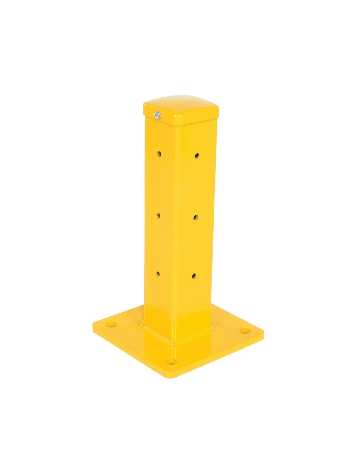 Create a modular system to protect equipment, inventory, and individuals from damage or injury. Corrugated rails are constructed from 1/8" thick material, made for high impact resistance indoors and out. Posts are constructed of 1/4" thick material with mounting holes on all four sides for use as corner or center posts. Posts measure 4" x 4" with a 10" square steel base plate that is 5/8" thick. Bolts and washers are provided with individual rail sections. Provide easy accessibility with our drop-in style rails. Slide rail sections into post saddles for simple assembly. Each drop-in style rail section includes two brackets. Bolt-on style rails are designed for permanent installation. Optional gate available for easy access in and out of work area. Galvanized material available. FOB Shipping Point.