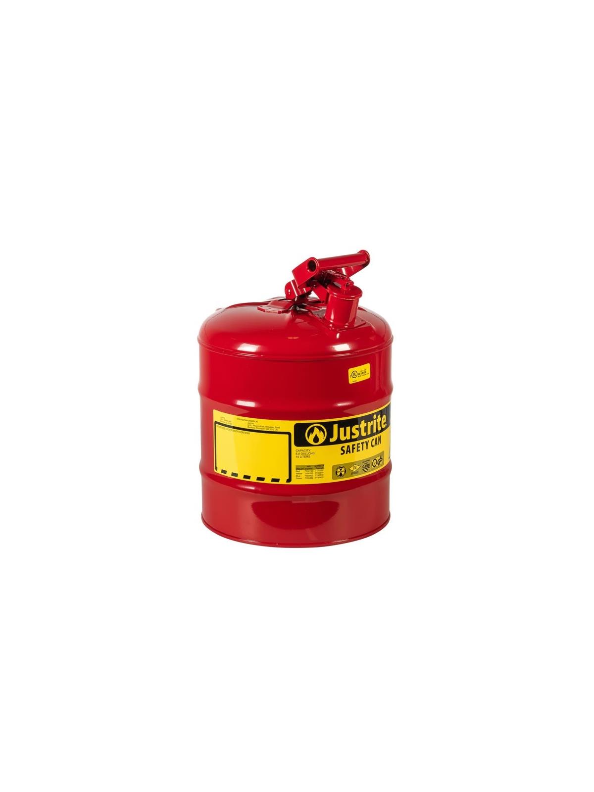 Made of 24 ga. steel for rough daily use. Complete with tested and approved closure and pressure relief mechanism with powder paint finish. Counterbalance designed for easy pouring. Large label ID Zone reduces misuse. FM approved and UL listed. Meets OSHA and NFPA requirements. FOB Shipping Point.