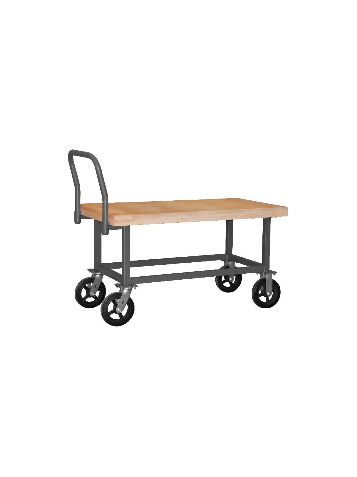 All welded heavy duty steel trucks feature heat treated hardwood surfaces with a removable, tubular offset handle that allows for easy mobility. 8 x 2" mold-on rubber casters (2 swivel and 2 rigid). Ships fully assembled and ready to use. Durable, textured gray powder coat finish. FOB Shipping Point.